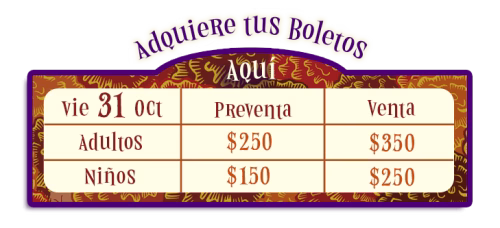 Boletos en puerta el día del evento tendrán costos de: Adultos $350 y Niños $200.