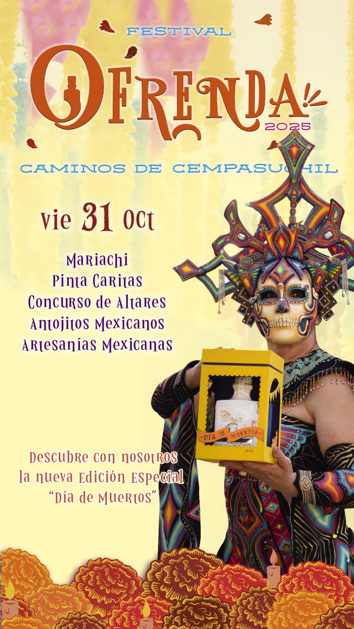 Vuelve el Festival Ofrenda · Una noche para conmemorar a nuestros seres amados en un Día de Muertos único y mágico, lleno de Música, altares, antojitos, y la presentación de nuestra Edición Especial de “Día de Muertos” 2025.